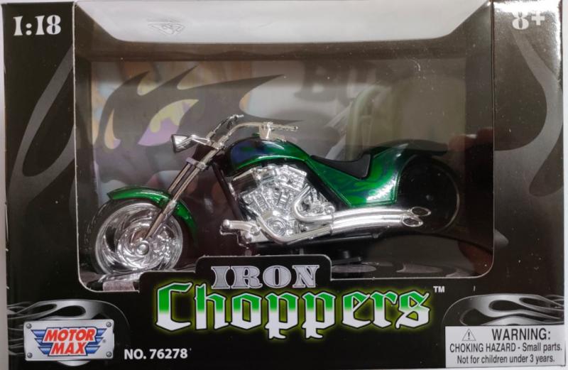 Motormax 1/18 Iron Chopper Motorcycle - Green/Blue
